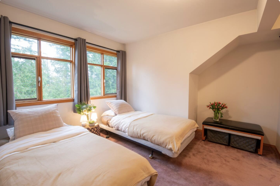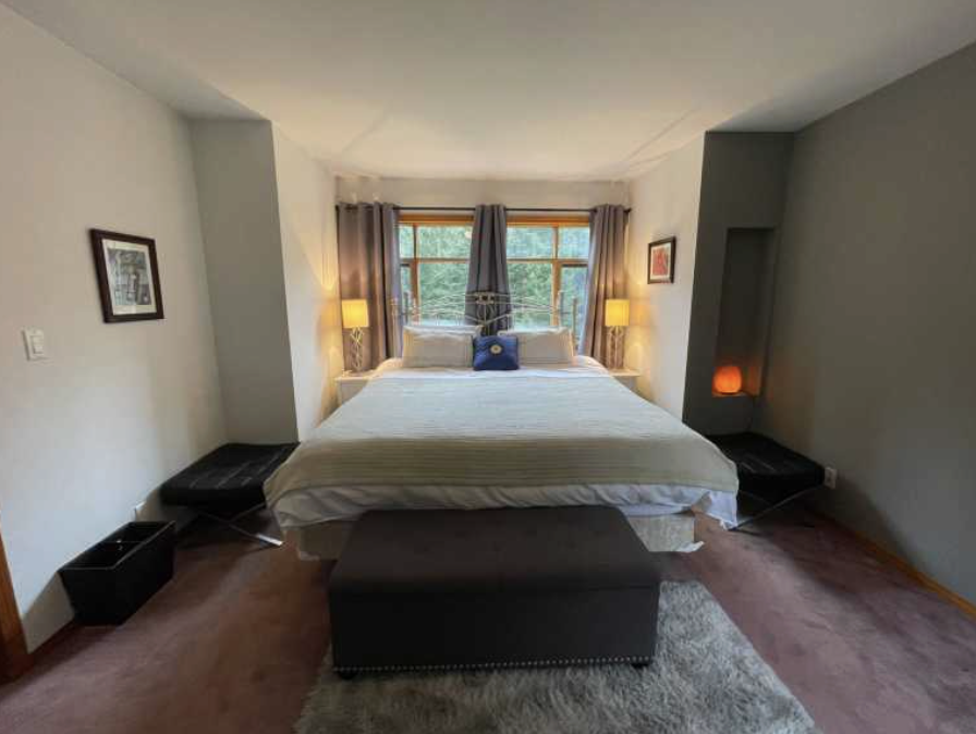We have exclusive use of the entire cozy forest cottage and grounds for 2 nights and 3 days together. Enjoy comfortable beds, spacious shared bathrooms, inviting living areas, and a relaxing outdoor patio + firepit. The property also features a hot tub, sauna, cold plunge tub, and plenty of space to unwind and connect.