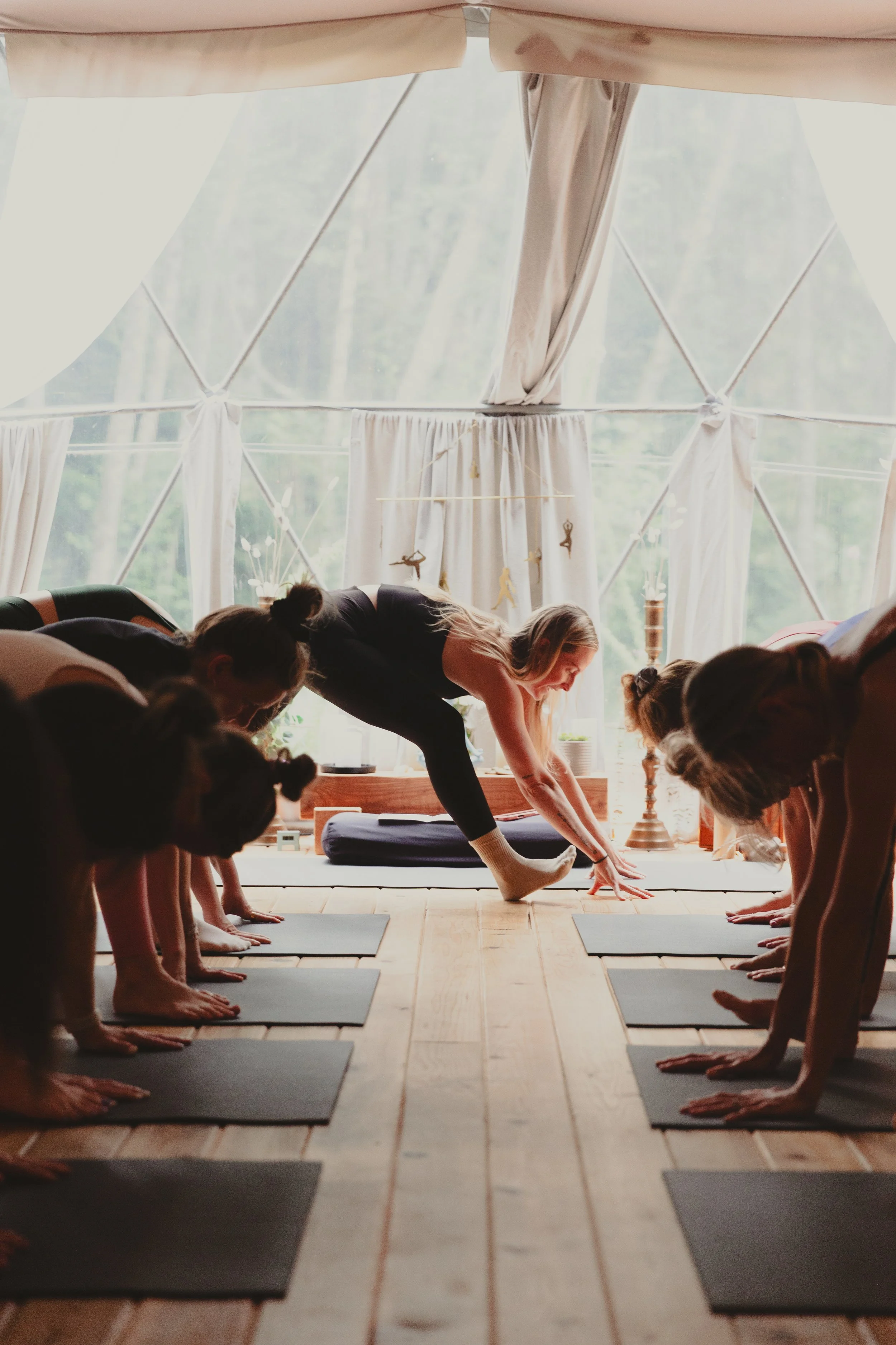 Two 90 min. morning yoga practices: vinyasa flow, weaving yoga philosophy, breathwork, meditation, and journaling centered around a daily theme. Two 60 minutes evening practices: Yin Yoga & Restorative Yoga.